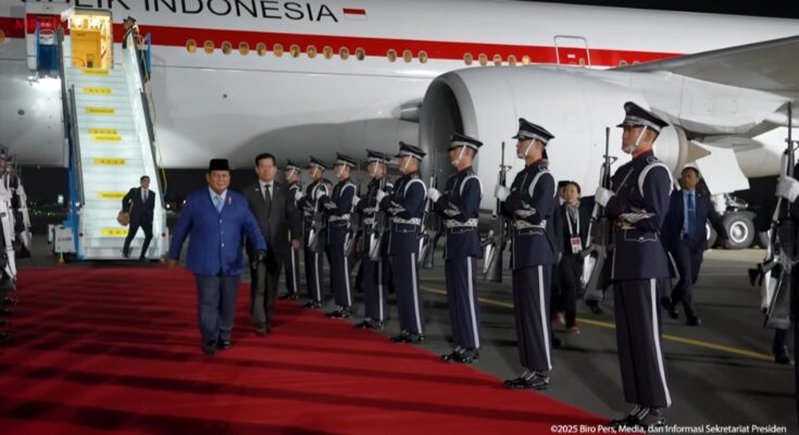 Korsel – Presiden Republik Indonesia, Prabowo Subianto, tiba di Republik Korea pada Kamis malam, 30 Oktober 2025, untuk menghadiri Konferensi Tingkat Tinggi (KTT) Asia-Pacific Economic Cooperation (APEC) 2025 yang akan digelar di Gyeongju. Pesawat Kepresidenan Garuda Indonesia-1 yang membawa Presiden dan rombongan mendarat di Pangkalan Udara Gimhae, Busan, pada pukul 22.20 waktu setempat.