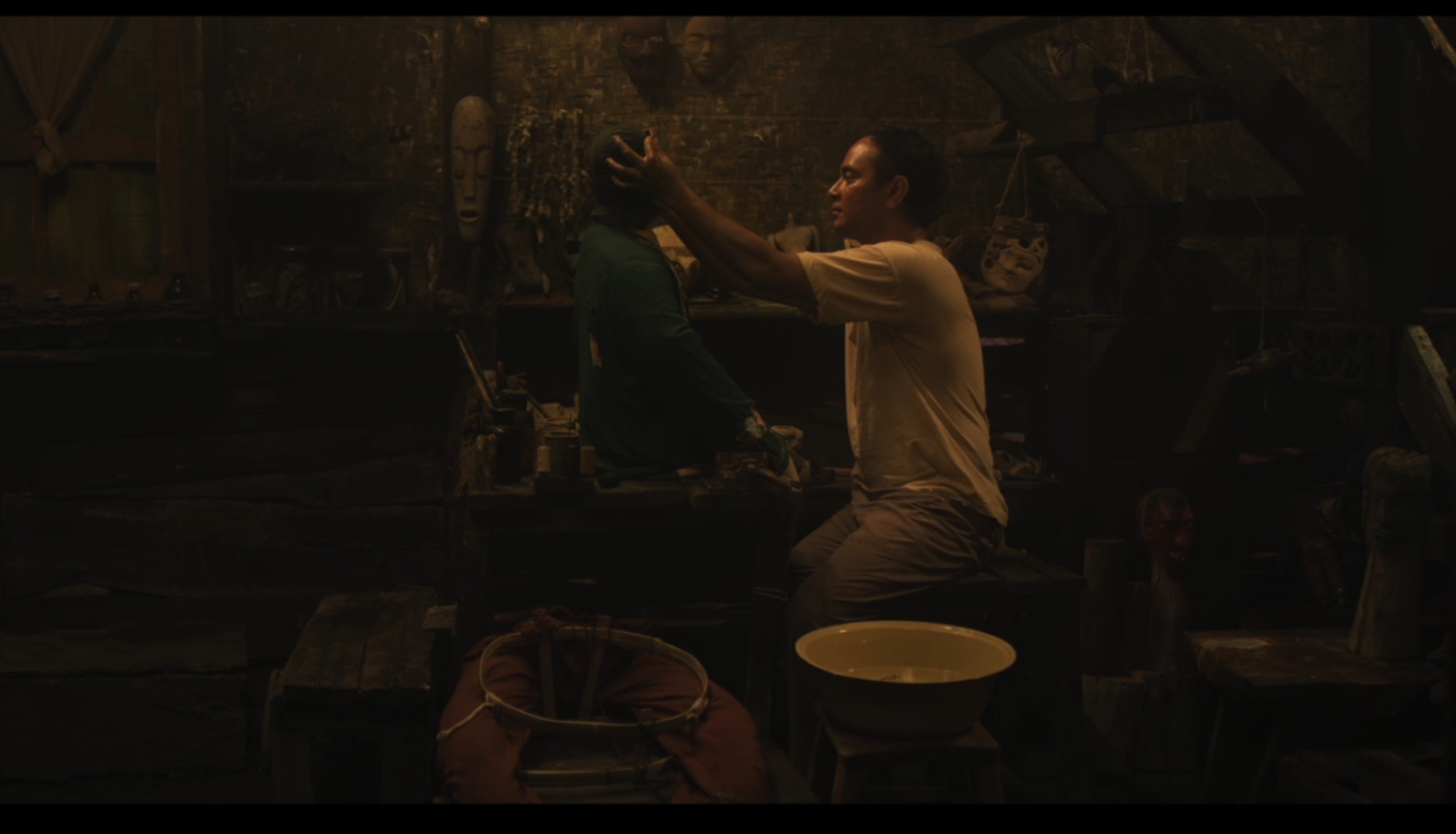 Dalam cuplikan tersebut, penonton diperkenalkan pada sosok Darso yang diperankan secara intens oleh Marthino Lio. Ia terlihat tengah mempersiapkan sebuah topeng misterius yang seolah memiliki “nyawa”. Dengan tatapan kosong penuh obsesi, Darso memasangkan topeng itu pada sosok Badut Gendong, menciptakan kesan menghidupkan sesuatu yang semestinya tetap mati.
